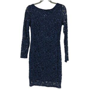 MARINA Navy blue Longsleeve Sequin Sheath Cocktail Dress Low Back Size ~ S