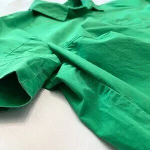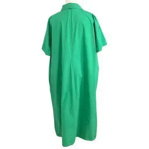 MARINA RINALDI SPORT GREEN COTTON-POPLIN DRESS, this is a superlightweight unlined breathable cotton-poplin dress in a solid vibrant green with a button up styling - short rolled tab sleeves - side slit - scooped hem, perfect summer casual apparel with sneakers or flip flop- casual to business casual / travel relaxed fit comfy dress.
