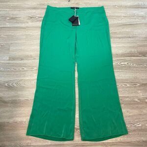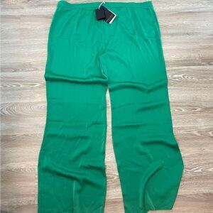 MARINA RINALDI Satin Trousers Green Wide Leg Light Summer Pants sz 24