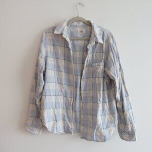 MARINE LAYER Monterey Flannel Shirt in Cool Blue Plaid - Women's Size XL