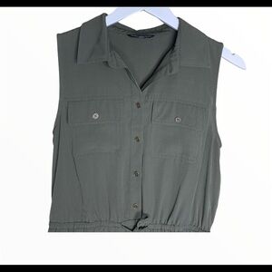 MARIO SERRANI Utility Sleeveless Dress With Tie Waist Olive Green Size Medium