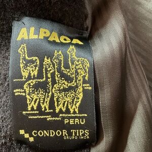 MADE IN CANADA. There is some minor wear under the right armpit on inside lining (see photo). In otherwise very good pre owned condition showing no other outward signs of wear. 80% Baby Alpaca, 20% Wool. Fully Lined. Attached scarf with ‘leather’ tassle details and black faux fur cuffs at the wrists. Button front, some buttons are hidden on the way down. This coat is incredibly soft and very warm and cozy. It is a size 10 but I am an XL and this fits me just fine so the coat is oversized. Photos are important so please check all for condition, detail and measurements. Some photos lightened to show detail. Coat is a deep, rich dark brown. Ankle length or just above on most.