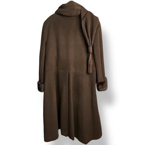 MARISA MINICUCCI Baby Alpaca Full Length Coat Brown w/ Tassle & Faux Fur Detail