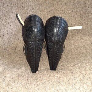 MARK & JAMES-BADGLEY MISCHKA-Roana-Black Leather Wooden Wedge Platform-Sz 5.5-NM