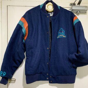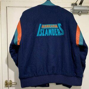 MARKHAM ISLANDERS LEATHER WOOL SPORT BOMBER JACKETS SIZE M/L
