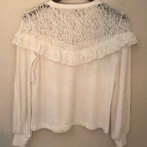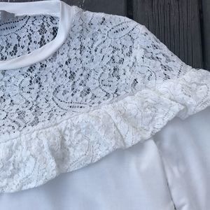 Lightweight white ruffle lace yoke sweatshirt top from Marled Reunited Clothing