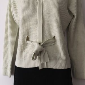 MARLOWE ITALY 70% Cashmere + 30% Silk Pale Green Rib Knit Belted Cardigan S