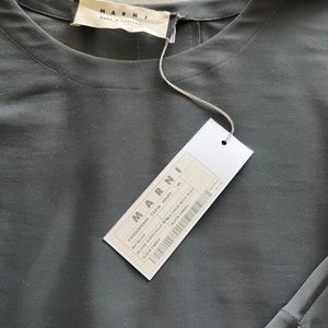 MARNI blouse- dark green , made with slack fabric . MADE in PORTUGAL. European size 40. 3/4 sleeve and pleat in back. NEW with original tags