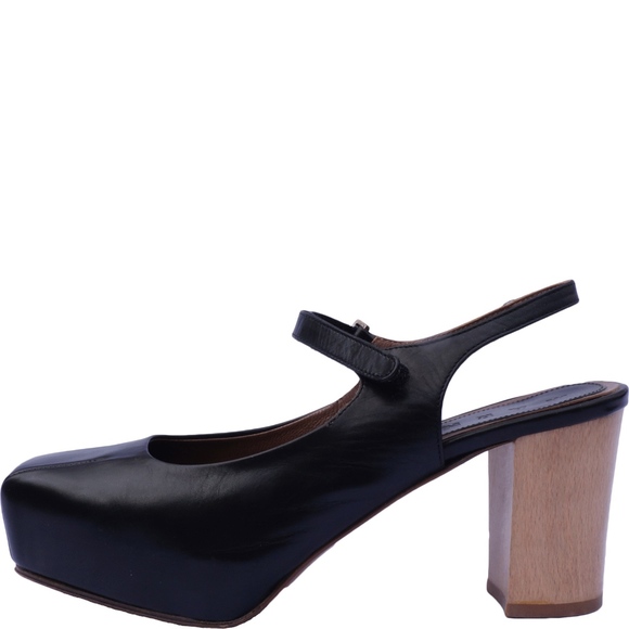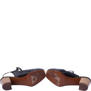 Condition: B- wear on soles and left outer sole small nicks, wear/creasing to leather upper; slingback strap has a tear that can be fixed by cobbler.