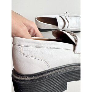 MARNI White Leather Piercing Square Toe Platform Penny Loafers, Size 36.5