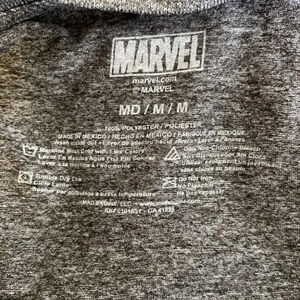 Men’s heather charcoal dark grey Marvel “The Punisher” graphic moisture wicking short sleeve crew neck T-shirt.
