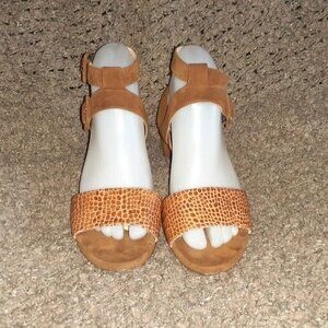 MARVIN K. Chestnut Suede/Croc Print Leather-Double Ankle Strap-Sz 6.5-Excellent