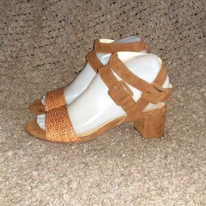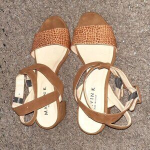 MARVIN K. Chestnut Suede/Croc Print Leather-Double Ankle Strap-Sz 6.5-Excellent