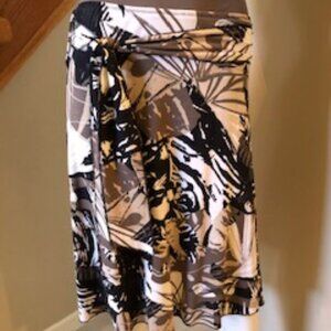 MARZ Impression Viscose Blend A-Line Pattern Skirt w Belt White Tan Black Sz 40