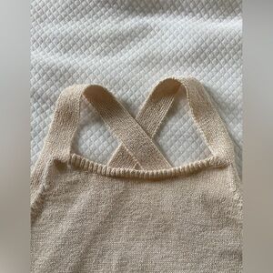 Elevate your style with this chic beige knit halter top. Perfect for any occasion, this top offers both comfort and elegance. A little shinny depending on the lightning.