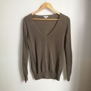MASSIMO DUTTI Festive Disco Gold Beige V Neck Thin Knit Sweater Size Medium