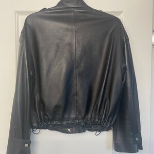 MASSIMO DUTTI Leather Woman Bomber Jacket Black Small Gold Hardware