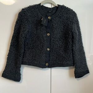 MASSIMO DUTTI NWT Boucle Knit Alpaca Wool Grey Cardigan with Buttons