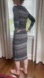 Jersey like hugging comfortable dress in XS. Color is mixture of greys, black, tan and cool blues.