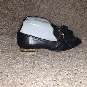 MASSIMO DUTTI-Black Nappa Leather Chain Suede Kiltie Loafers-Sz 37-Excellent