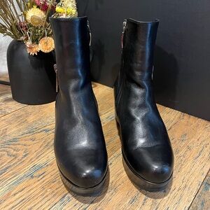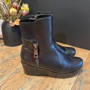🖤 MASSIMO SANTINI – Black Leather Wedge Ankle Boots – Size 38