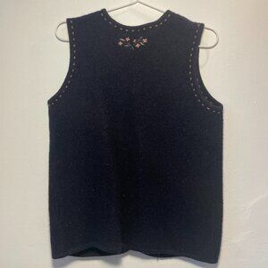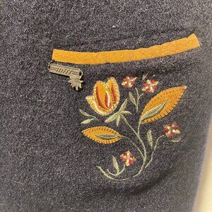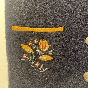 MAT collection dark blue boiled wool sleeveless vest with flower embroideries and detailed vintage metal buttons