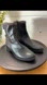 Chic black leather ankle boots with ribbed knit cuff and side buckles. Comfortable, easy to wear, and versatile for everyday outfits. Side zipper closure. Good condition, minimal signs of wear.