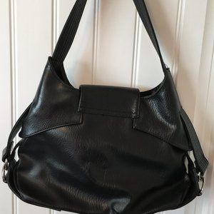 Inside of purse has large zippered compartment and 2 slip pockets.