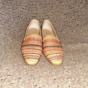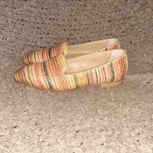 MATTEO BERTONI-Italy-Superb Multicolor Glazed Straw/Leather Flat-Sz 37-Excellent