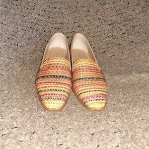 MATTEO BERTONI-Italy-Superb Multicolor Glazed Straw/Leather Flat-Sz 37-Excellent