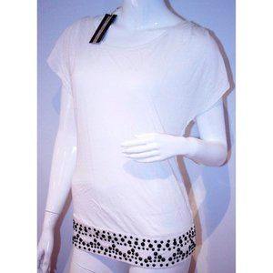 MATTY M 100% RAYON Waistband STUDDED Shirt TOP M White