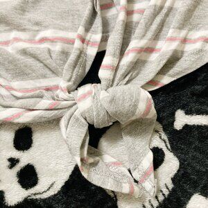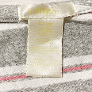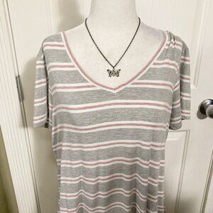 MATTY M Grey white pink striped v-neck t-shirt ~ LARGE XL 1X tie waist top tee