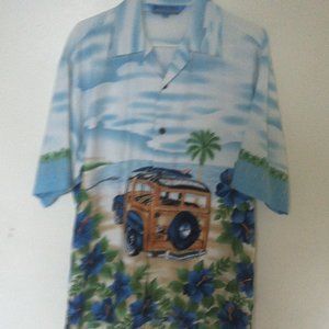 MAUI MAUI | Men's Palm Trees Hawaiian Shirt Blue Green M