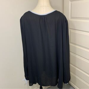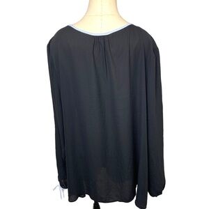 MAURICES Black Gray Minimalist Flowy Crepe Blouse Relax Fit Key Holes Sleeves 24
