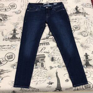 Designed with a comfortable mid-rise fit, Alexa is a skinny that fits slim throughout the hip, thigh, and leg opening for a flattering shape. This pair is part of our SuperSoft denim collection that offers superior fit retention, structure and stretch. These feature a classic dark wash that gives them a slight sheen.