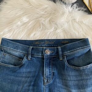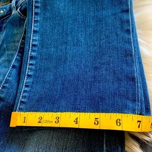 These jeans have been altered in length as per pictures now leg is 31” inch inseam. Button has also been changed. Look great on :)