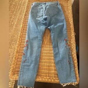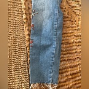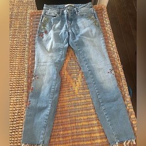 GORGEOUS MAVI CO. Light blue jeans, with beautiful embroidery pattern and frayed hems at ankle! 💞