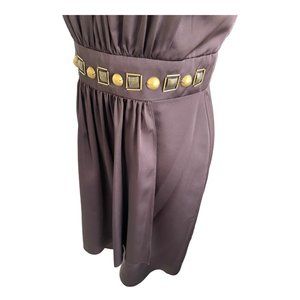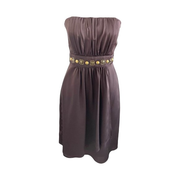 NWOT! Brand new without tags. NEVER WORN! Stunning MAX AND CLEO strapless dress with wrap front. Incredible beadwork along the front side of the waist. Cocktail/knee length and fully lined. Really nice chocolate brown colour with gold beading. Bought in the USA a few years ago from SAKS FIFTH AVENUE. Polyester but feels like SILK! Fits smaller - tag is 6 but fits more like.4.