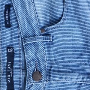 Denim pinstripe mid rise capri's. Lightly worn. Great condition. Stretch for added comfort