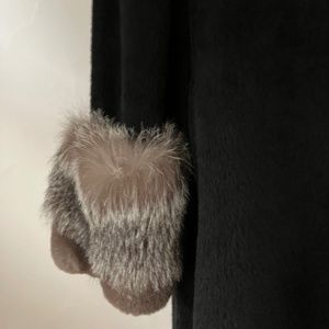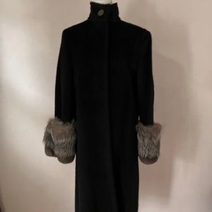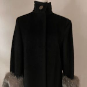 Perfect condition, Max Mara charcoal grey 70% Alpaca and 30% Wool, large Fox fur cuffs from Finland, hidden buttons down the front, and one large accent button, Size 4, Made in Italy, this is a very luxurious and warm coat