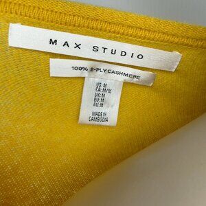 MAX STUDIO 2-Ply Cashmere Long Sleeve Boat Neck Rolled Edges Yellow Sweater Sz M