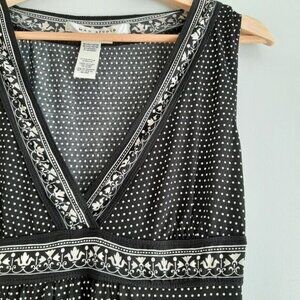 MAX STUDIO Babydoll Stretch Soft V-Neck Tank Top B&W Sz S