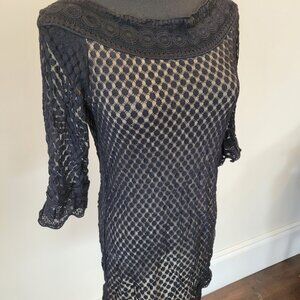 MAX STUDIO Black Lace Overlay Long Sleeve Tunic, Size Medium