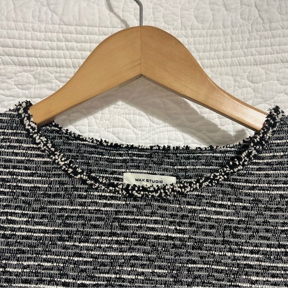 MAX STUDIO Black and White Textured Tunic with Pockets, Size Medium