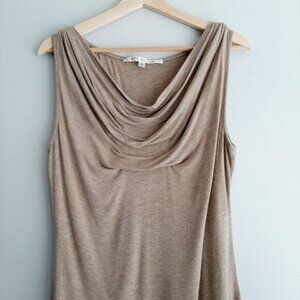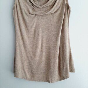 MAX STUDIO Draped Cowl Neck Stretch Tank Top Beige Cream Sz L
