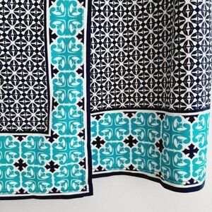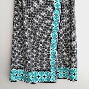 MAX STUDIO Geometric Blue Pattern Stretchy Faux Wrap Mini Dress Sz L