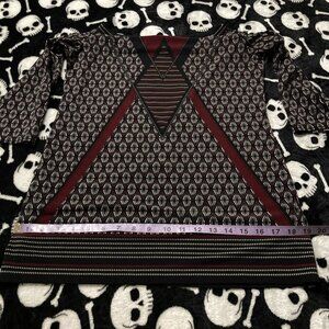 MAX STUDIO Geometric print black burgundy 3/4th sleeve top ~ XS SMALL goth shirt