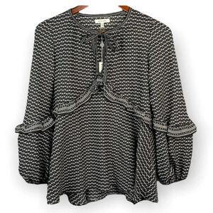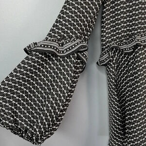 MAX STUDIO NWT Ruffled Tie Neck Balloon Sleeve Blouse Black White Pattern Size S