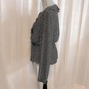 MAX STUDIO Ruffled Polka Dot Blouse Elastic Waist Bow Tie, Size L