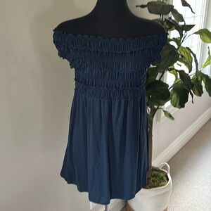 Max Studio teal blue ruffled sleeveless top, or mini dress depending on your height 😊. Detailed smocking on top and at wide/round neck, flares out from fitted bodice perfect for any occasion. Ideal for pairing over jeans, leggings or pencil skirt. Soft stretch fabric with a flattering cut. No issues to note from SFPF home. Pls see pics for tags and measurements.
